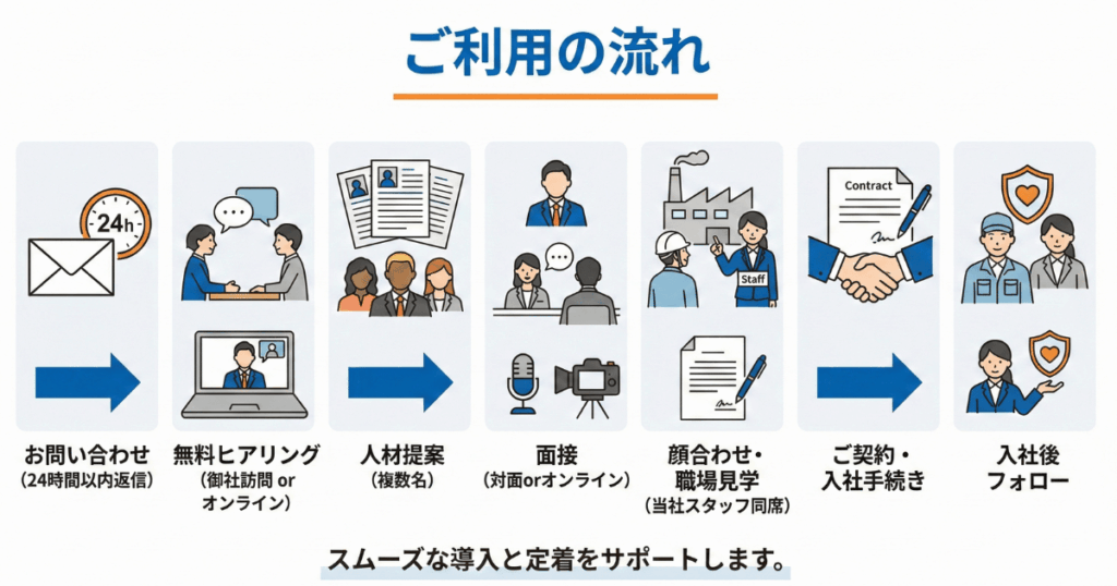 → 入管手続き・生活オリエンテーションまで全て代行。 - 紹介料は成功報酬のみ