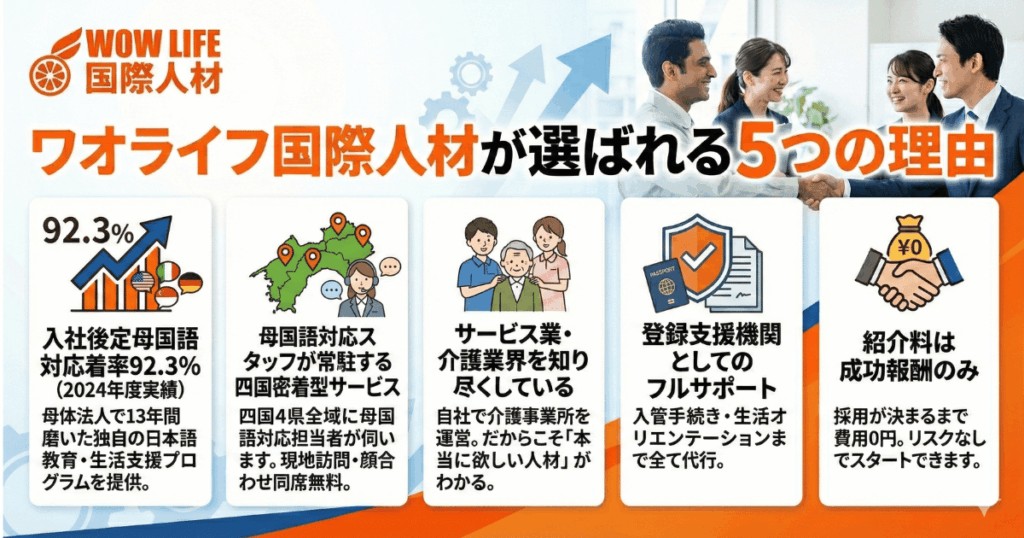 四国の外国人採用ならワオライフ国際人材|選ばれる「5つの理由」と圧倒的な定着率の秘密