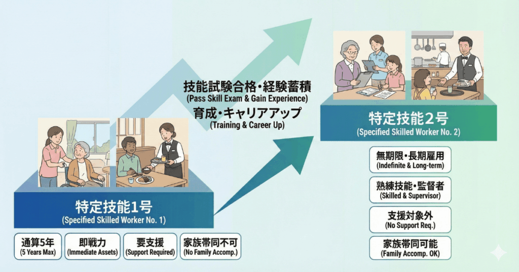 2024年時点で約20万人在留(ベトナム・フィリピン・インドネシア出身が多数)。「1号」(5年上限、家族帯同不可)と「2号」(更新可、家族帯同・永住可)あり。2029年までに最大82万人受け入れ予定。日本語能力(N4以上)と技能試験合格が条件。受け入れのメリットとして即戦力確保と柔軟な人材活用が可能です。法令遵守で安定就労を実現し、貴社の事業拡大をサポート。詳細はお気軽にお問い合わせください。